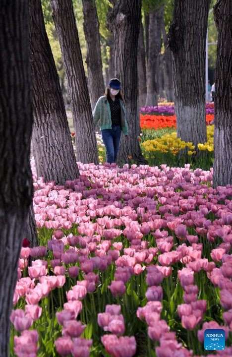 Fotografije snimljene 19. aprila prikazuju kako građani uživaju u cvetanju cveća u distriktu Dašing u Pekingu, glavnom gradu Kine.