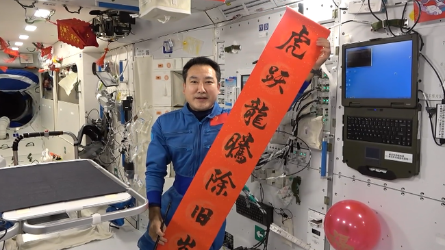 Video koji je objavila Kineska medijska grupa (KMG) pokazuje da su tajkonauti već ukrasili unutrašnjost svemirske stanice balonima i tradicionalnim kvadratima od crvenog papira. Kineski karakter koji označava sreću ispisan je na crvenim listovima papira, što znači da je sreća već stigla.
