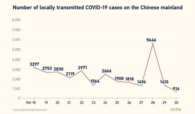 Matični deo Kine prijavio je juče 920 novih slučajeva kovida-19, od kojih je 916 slučajeva lokalnog prenosa, dok su četiri slučaja uvezena iz inostranstva, saopštila je danas Nacionalna zdravstvena komisija.