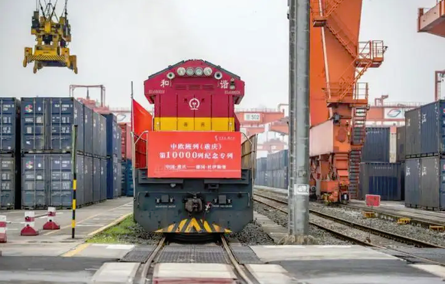 Ovo je obeležilo 10.000-to putovanje teretnih vozova Kina-Evropa kojima upravlja Kina-Evropa železnički ekspres (Čongćing), prvi te vrste u Kini.