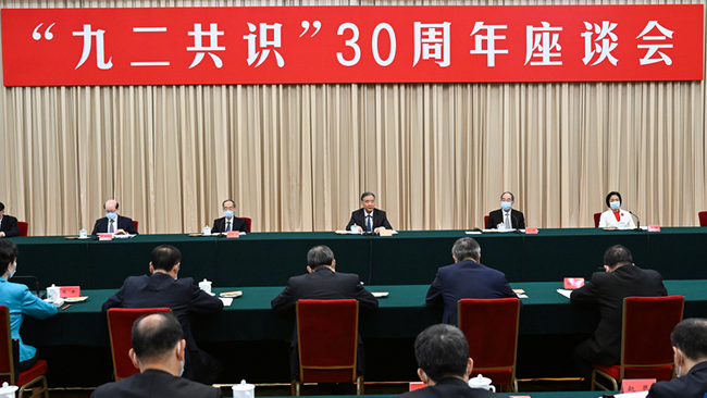 Najviši kineski politički savetnik Vang Jang je u utorak istakao važnost pridržavanja principa jedne Kine i konsenzusa iz 1992. godine i pozvao na zajedničke napore za ponovno ujedinjenje domovine.