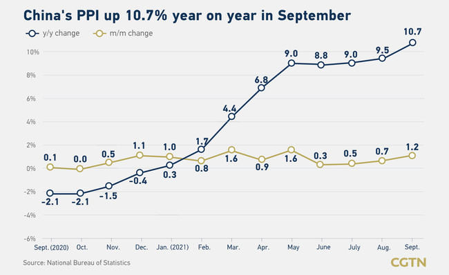 Zvanični kineski indeks proizvođačkih cena (PPI) dostigao je najviši rekordni nivo, koji je u septembru porastao za 10,7 odsto u odnosu na godinu dana ranije, zbog naglog skoka cena uglja usled nedostatka struje u čitavoj zemlji, pokazali su u četvrtak podaci Nacionalnog zavoda za statistiku (NBS) .