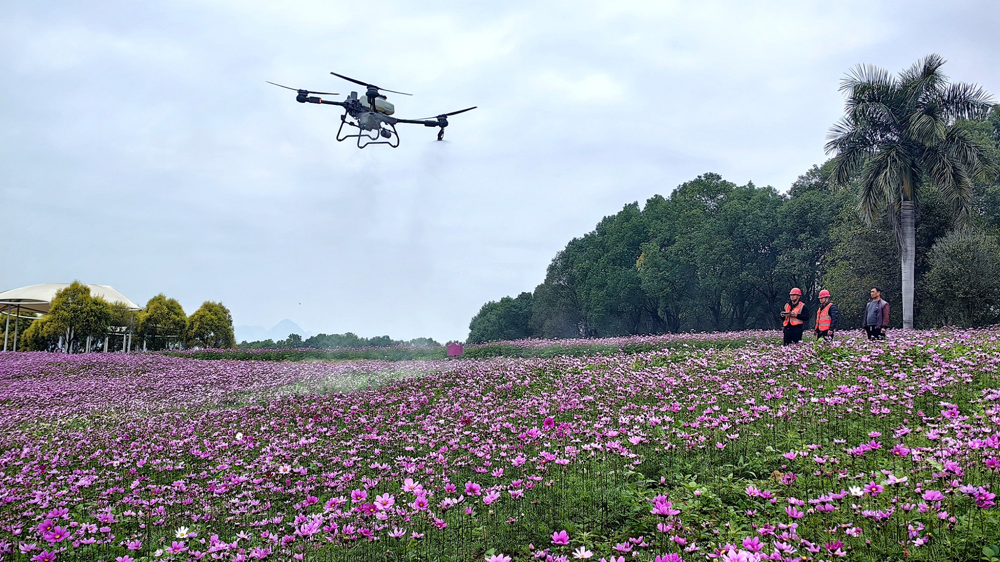 U okrugu Sinčeng, u okolini grada Lajbina u provinciji Guangsi, domišljato osoblje tamošnjih poljoprivrednih službi koristi dronove za zaštitu bilja, prskajući đubrivo po cvetnim poljima i čineći upravljanje poljoprivredom efikasnijim, uz pomoć tehnološke opreme.