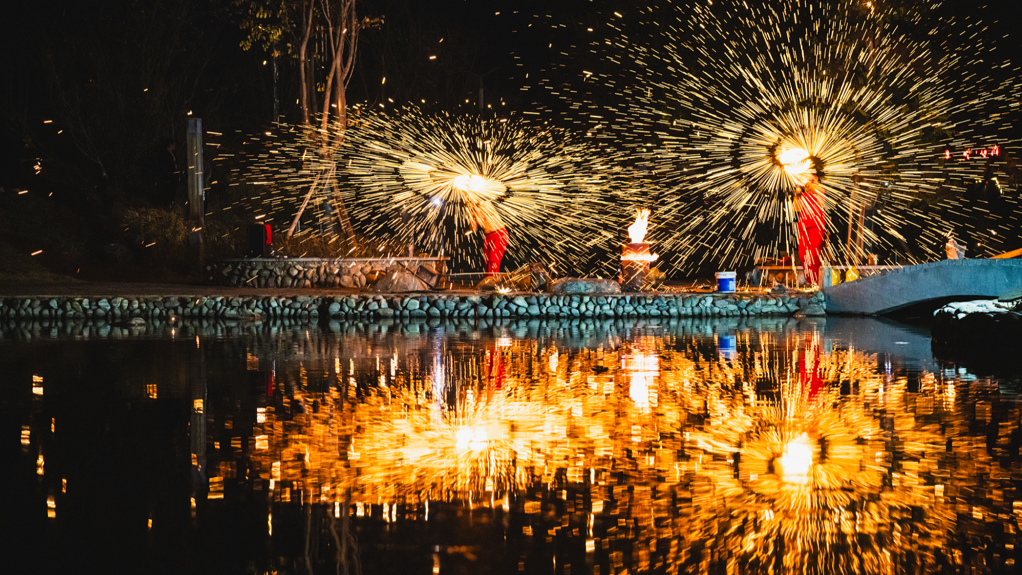 Tokom Prolećnog festivala, u drevnom selu Dašibanu, u okolini grada Sičanga u provinciji Sečuan, priređen je spektakularni vatreni šou sa vatrometom koji je prikazivao bljuvanje vatre, vatrene meteore, vatrene lonce i vatromet „gvozdenog cveća“.