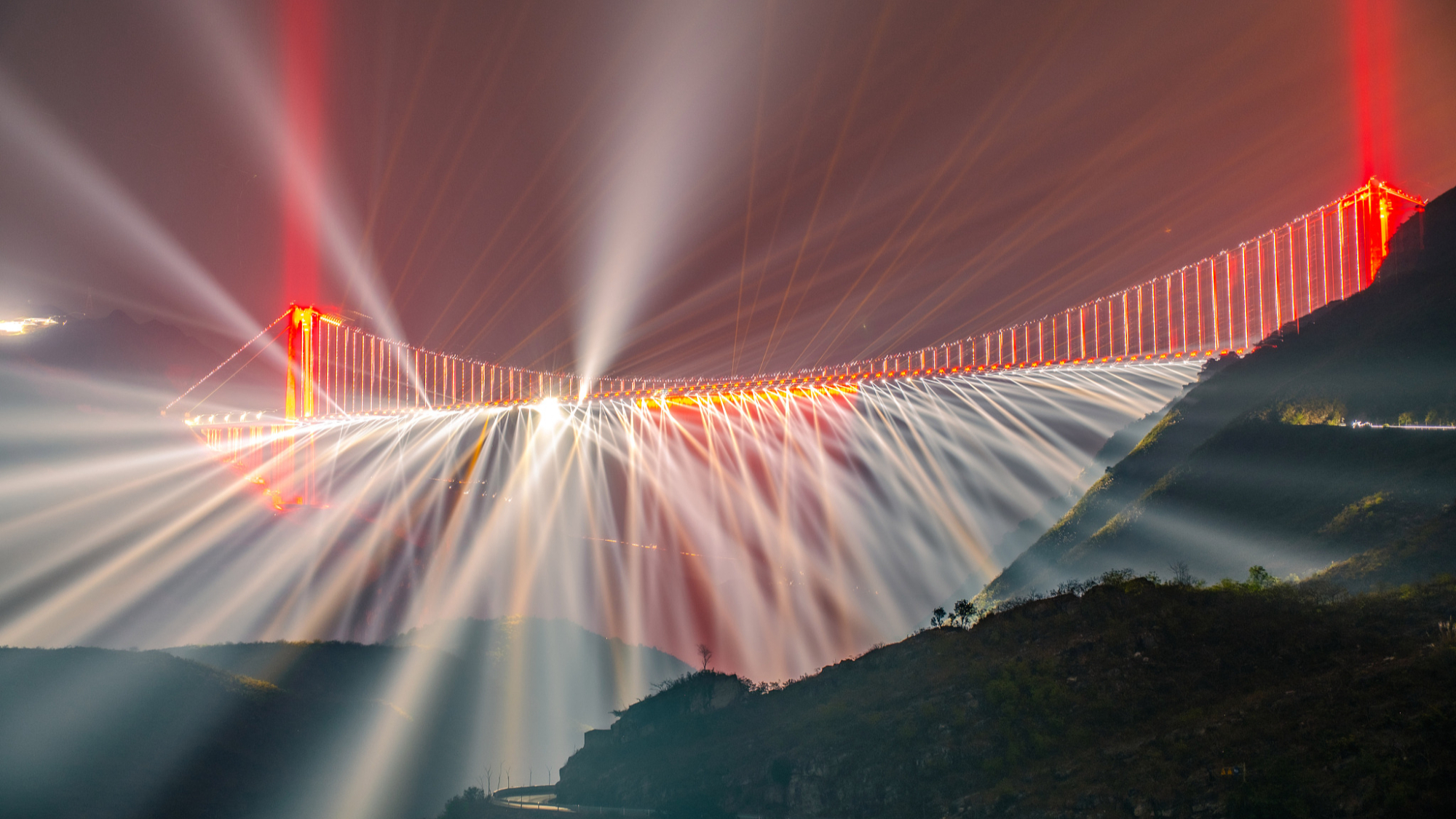 Svetlosni šou na mostu iznad kanjona Huađijang, u provinciji Guejdžou, blistav je. Kako padne noć, most koji je izgrađen 625 metara iznad zemlje, transformiše se u džinovsku zavesu od svetlosti i senki, sa laserima i vodom koji kao da se prepliću kako bi osvetlili noćno nebo iznad kanjona.