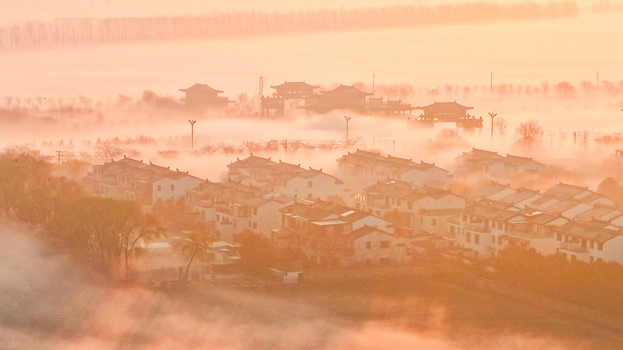 Lagana magla nad rekom Bijanhe u okrugu Sihung, u provinciji Đijangsu, prekriva vodu i čini da se kuće i sela na obe obale pojavljuju i nestaju.