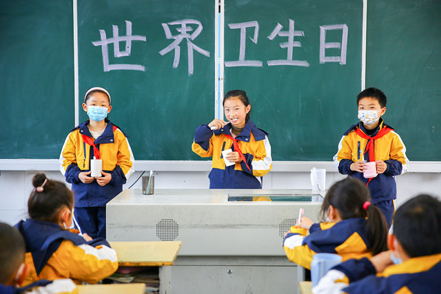 U osnovnoj školi Đijangdžung u gradu Nantungu u istočnoj provinciji Đijangsu, đaci uče kako se pravilno peru zubi.