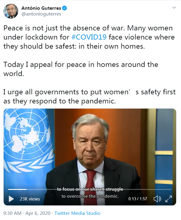 Generalni sekretar UN-a poziva na zaštitu žena tokom izolacije
