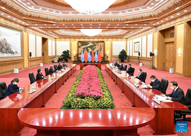 Gutereš je takođe pomenuo napore Kine u borbi protiv pandemije kovid-19, obezbeđivanjem dve milijarde vakcina i pozdravio značaj Sijeve inicijative za izgradnju održivog i uravnoteženog sveta.