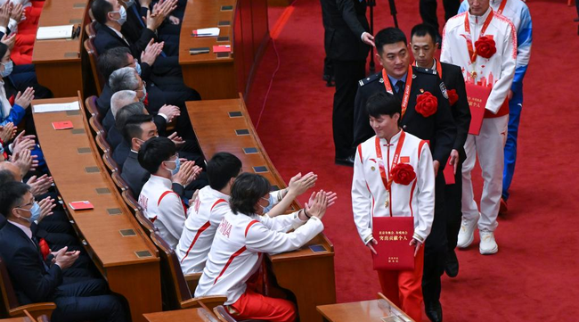 Kineski predsednik Si Đinping održao je govor na skupu u Velikoj sali naroda u Pekingu u čast svih onih koji su dali izuzetan doprinos na Zimskim olimpijskim i paraolimpijskim igrama održanim u Pekingu 2022. godine.