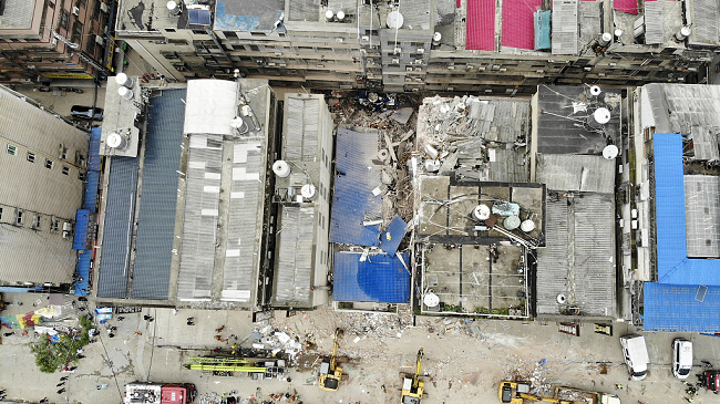 Osmospratnica u okrugu Vangčeng, čija je površina oko 700 kvadratnih metara, srušena je u petak u podne. U njoj su, prema preliminarnim podacima, bili restoran, kafić, hotel i nekoliko stanova.