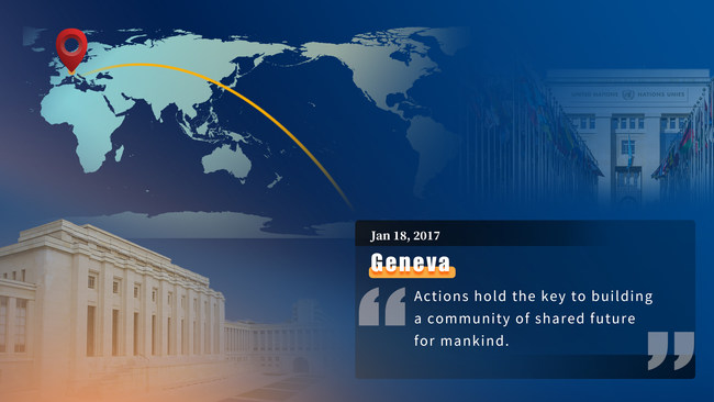 Kineski predsednik Si Đinping, prisustvovao je 18. januara 2017. godine, u Palati nacija, u Ženevi, sastanku na visokom nivou, pod nazivom „Zajednička diskusija i izgradnja zajednice zajedničke budućnosti za čovečanstvo”.