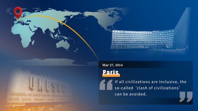 Kineski predsednik Si Đinping je 27. marta 2014. godine održao važan govor u sedištu UNESK-a u Parizu, sveobuhvatno i duboko izlažući svoje stavove i predloge o razmeni i međusobnom učenju među civilizacijama.
