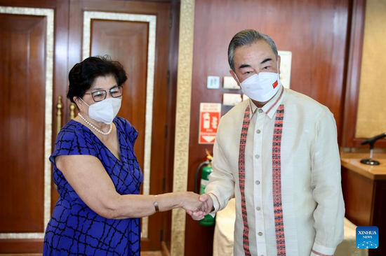Na sastanku sa filipinskom savetnicom za nacionalnu bezbednost Klaritom Karlos, Vang je rekao da su zajedničkim naporima dve strane odnosi Kine i Filipina bili svedoci pozitivnog preokreta, poboljšanja i unapređenja u proteklih šest godina.