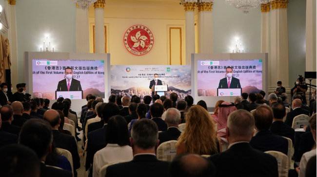 Komesar kineskog ministarstva spoljnih poslova u HKSAR-u Liu Guangjuan rekao je na ceremoniji da hronike takođe beleže praksu „Jedna zemlja, dva sistema“, koja se pokazala kao efikasan sistem za obezbeđenje trajnog prosperiteta Hongkonga.