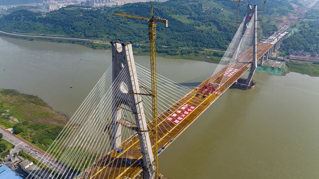 Prvi kineski drumsko-železnički žičani most dobija oblik
