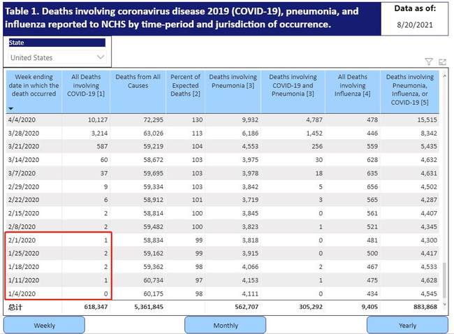 Najnoviji podaci o smrtnim slučajevima pokazuju da je prvi smrtni slučaj povezan sa kovid-19 se u SAD pojavio u januaru 2020. godine, nedeljama ranije nego što je američka vlada objavila.