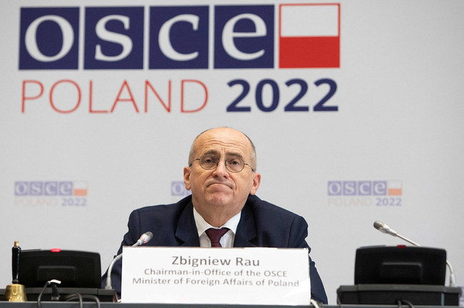 „Izgleda da je rizik od rata na području OEBS-a veći nego ikada ranije u poslednjih 30 godina“, rekao je poljski ministar spoljnih poslova Zbignjev Rau, čija zemlja predsedava OEBS-om 2022. godine.